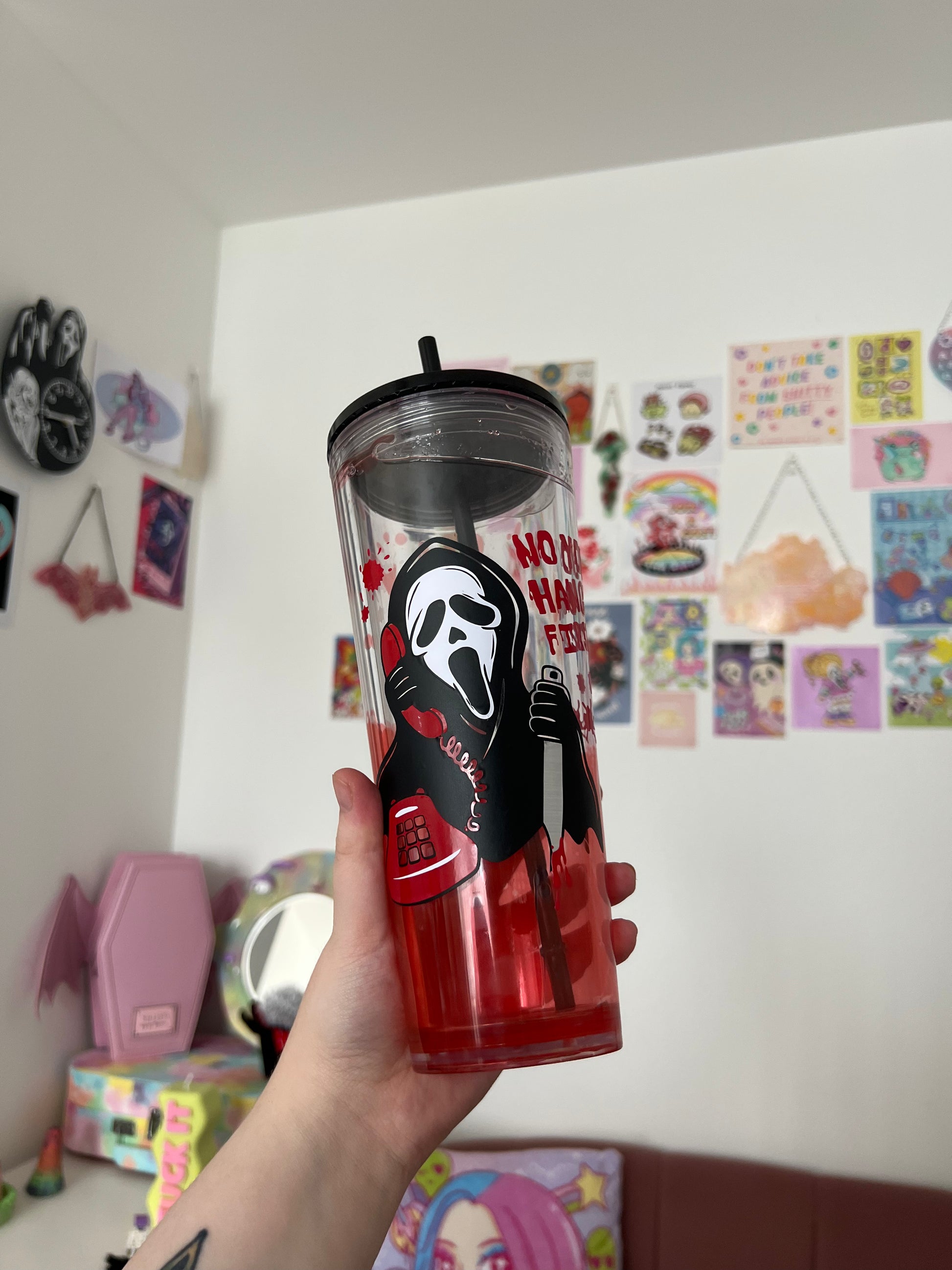 Shaker lid option: this option comes with a shaker lid which contains glitter, confetti, clay slices or rhinestones (or blood/green drip) to match your cup! Please note this will make your cup heavier / bulkier
